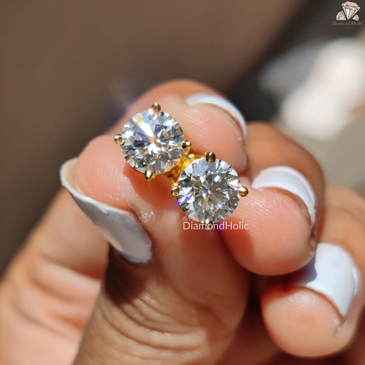 4-Prong Moissanite Earrings – Round Cut Studs with Push Back