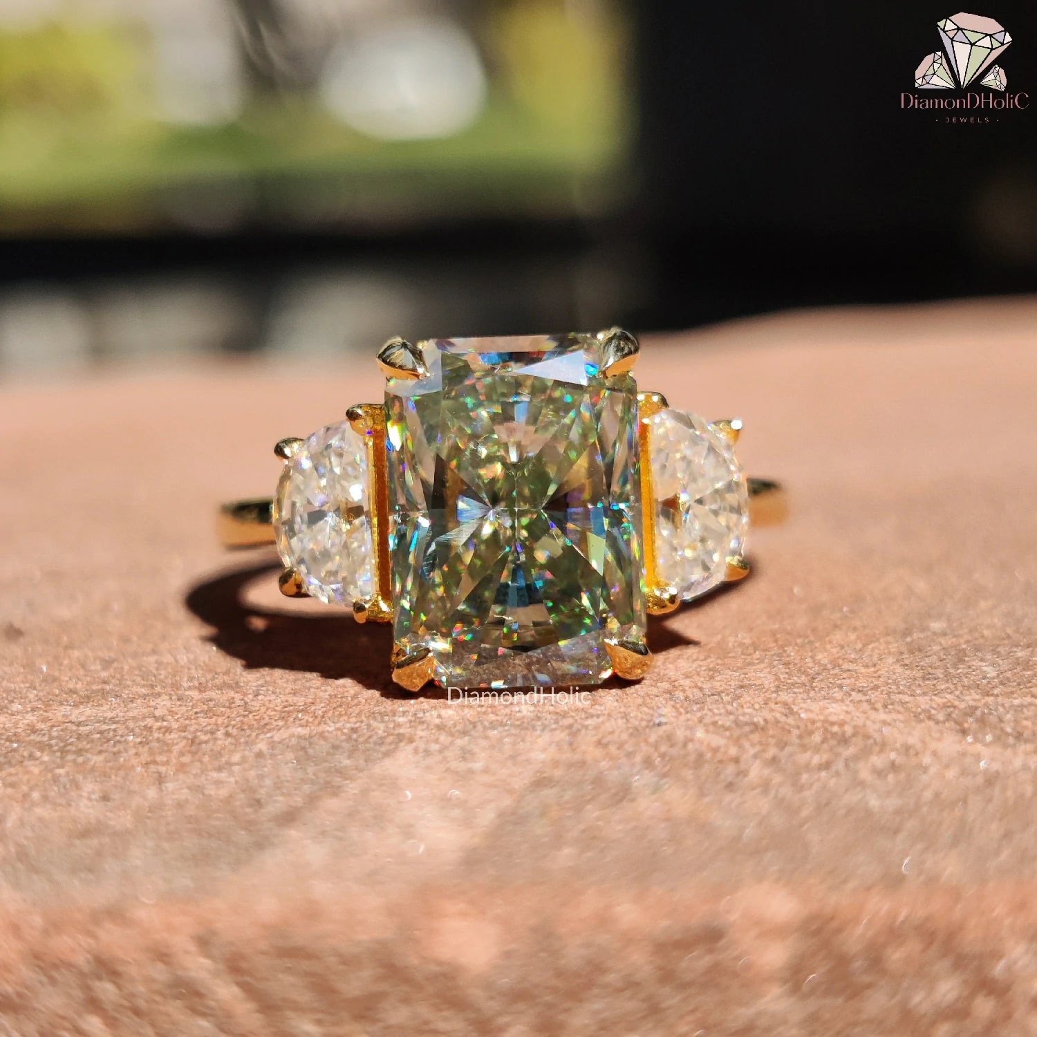 8.10 Carat Radiant Cut Light Green Moissanite Three Stone Ring