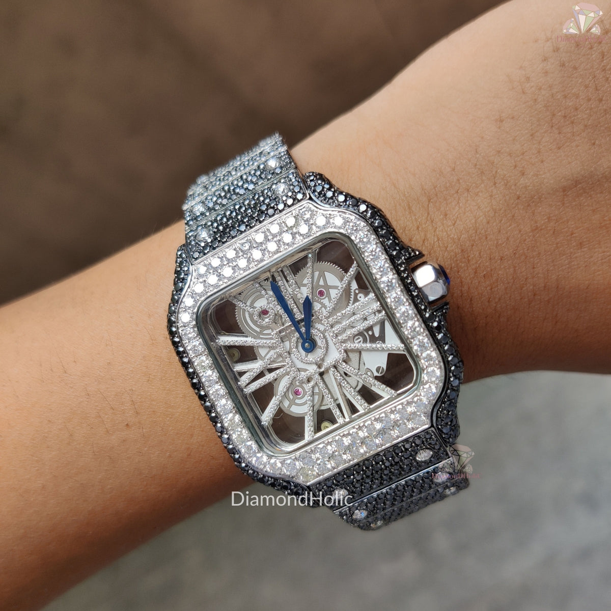 Black and White Moissanite Watch for Men - Top Halloween Gift