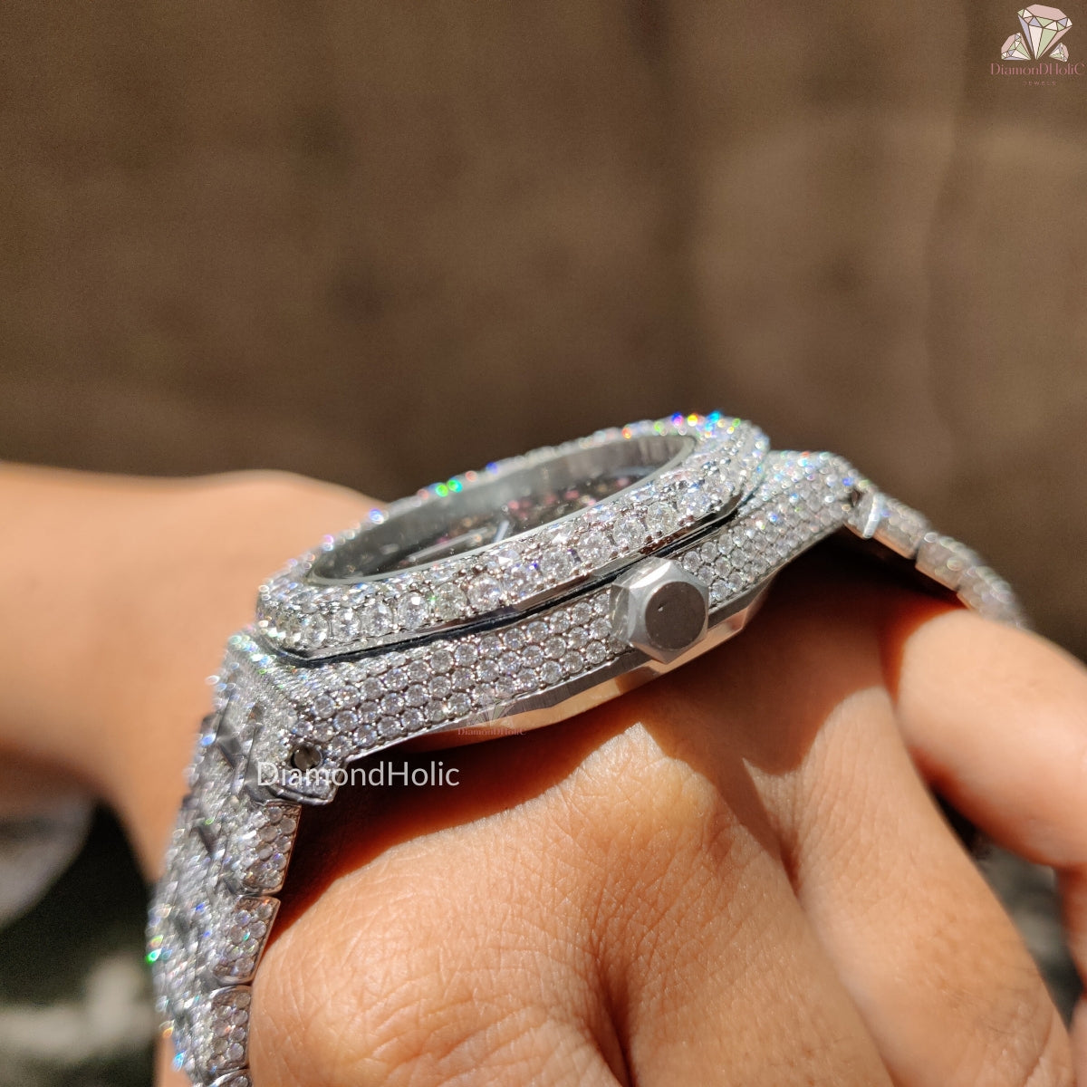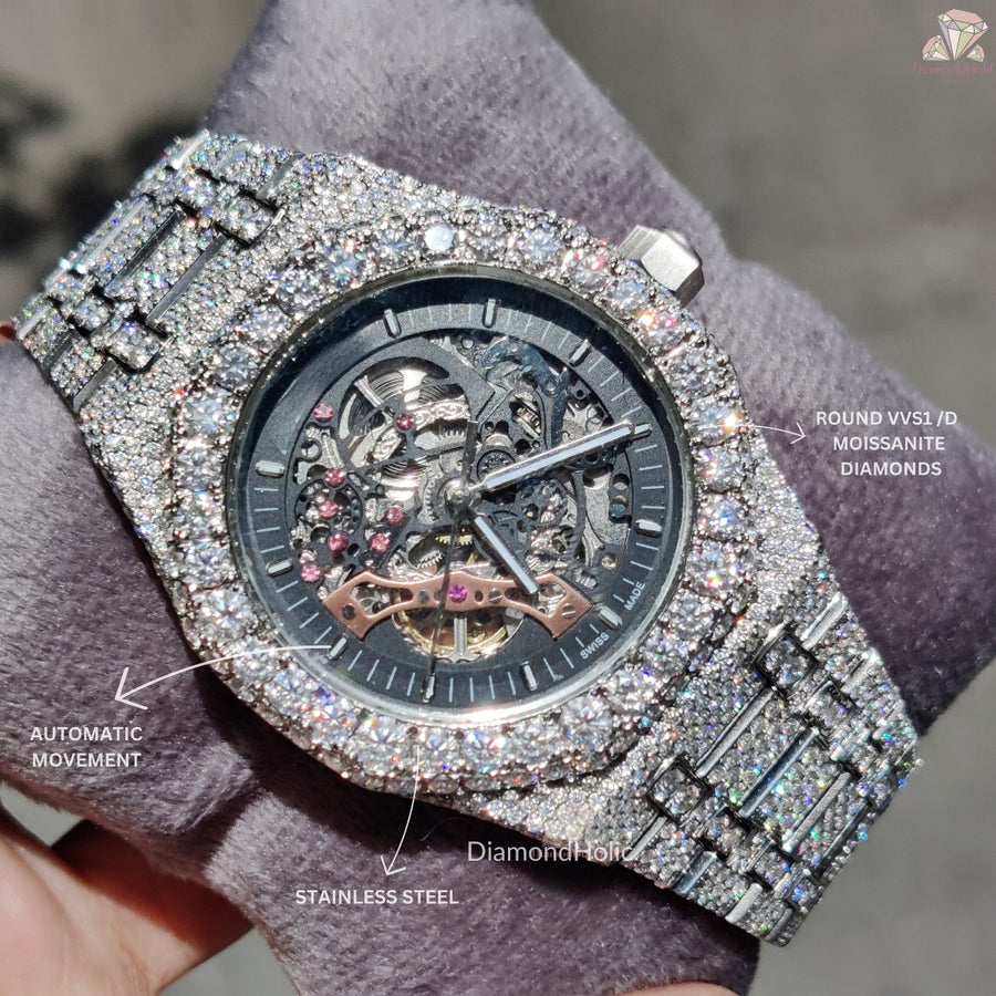 Stainless Steel Moissanite Diamond Man's Watch - Classic Lab Grown Diamond Watch